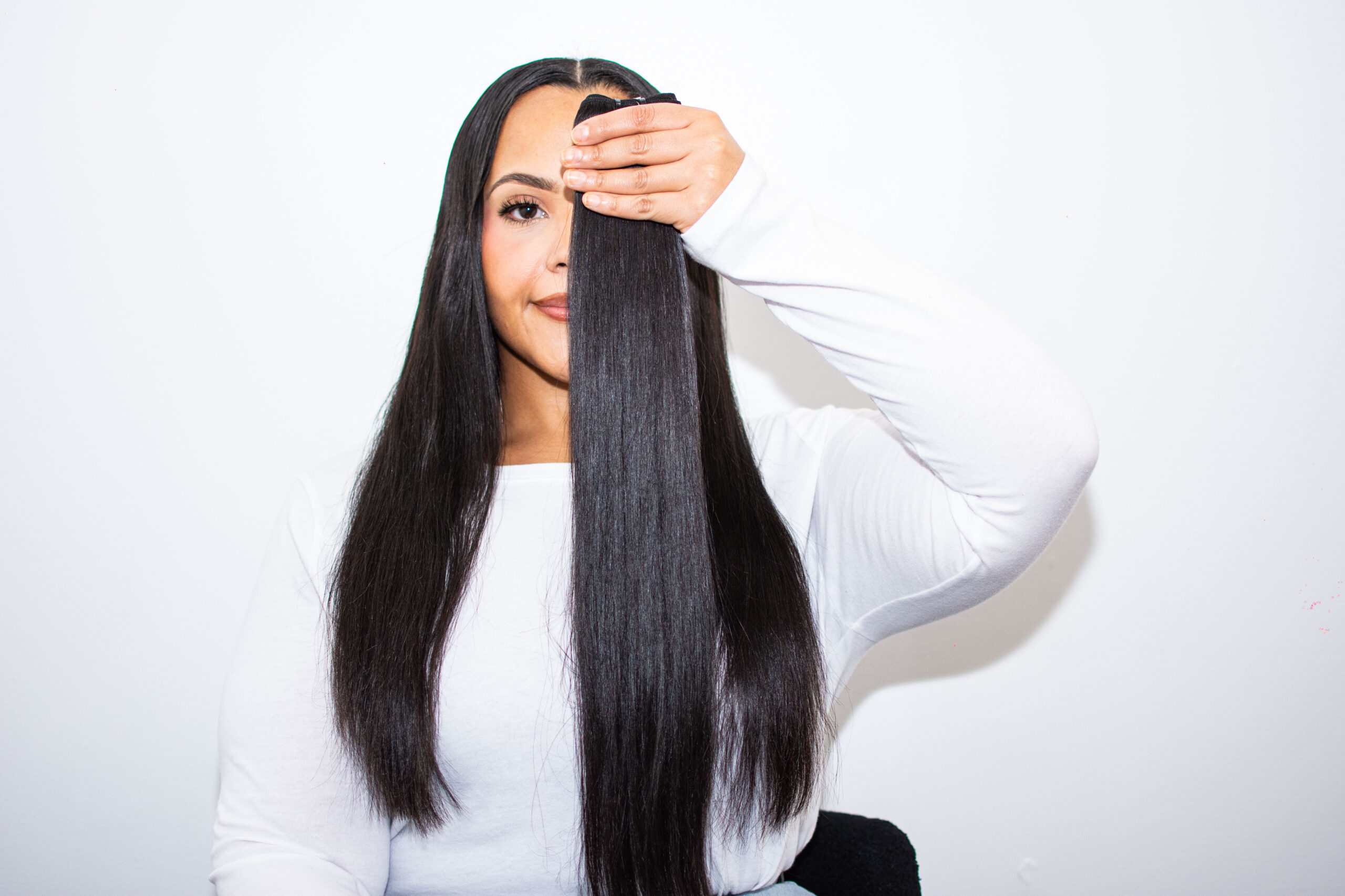 Our Straight Bundles are crafted from 100% raw human hair, ethically sourced from Cambodia and collected from a single donor. This hair is not synthetic and remains sleek, smooth, and full from weft to ends. Each bundle weighs 100 grams, offering a naturally full look with a soft, silky feel.